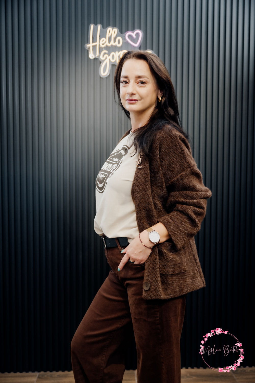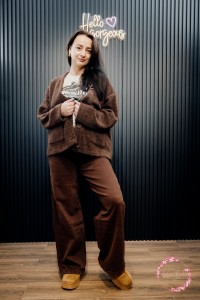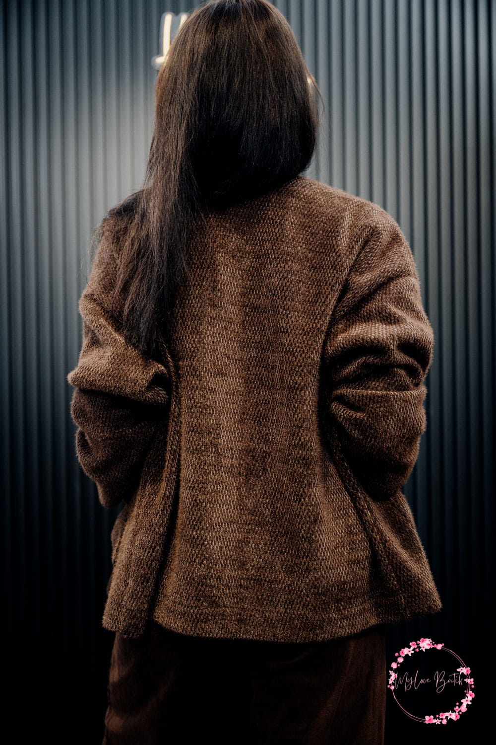 Brązowy kardigan z broszką – klasyka w kobiecym wydaniu . Miękki kardigan w głębokim odcieniu czekolady, z dekoltem w serek, guzikami i złotą broszką przy dekolcie. Klasyczny, lekko luźny fason zapewnia wygodę i elegancję na co dzień i na specjalne okazje. Idealny do stylizacji w ciepłych, naturalnych tonach.